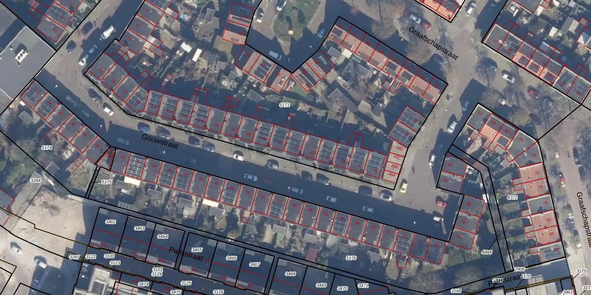 Het perceel waarop Gouwstraat 39 staat heeft een oppervlakte van 5164 m². Dit is een zeer groot perceel. De perceeloppervlakte wordt geregistreerd door het Kadaster. Gedetailleerde informatie over de maten van dit perceel kunt u vinden in het rapport Kadastrale kaart met maatvoering van Gouwstraat 39.
