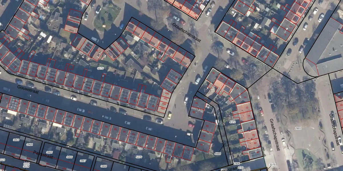 Het perceel waarop Gouwstraat 51 staat heeft een oppervlakte van 5164 m². Dit is een zeer groot perceel. De perceeloppervlakte wordt geregistreerd door het Kadaster. Gedetailleerde informatie over de maten van dit perceel kunt u vinden in het rapport Kadastrale kaart met maatvoering van Gouwstraat 51.