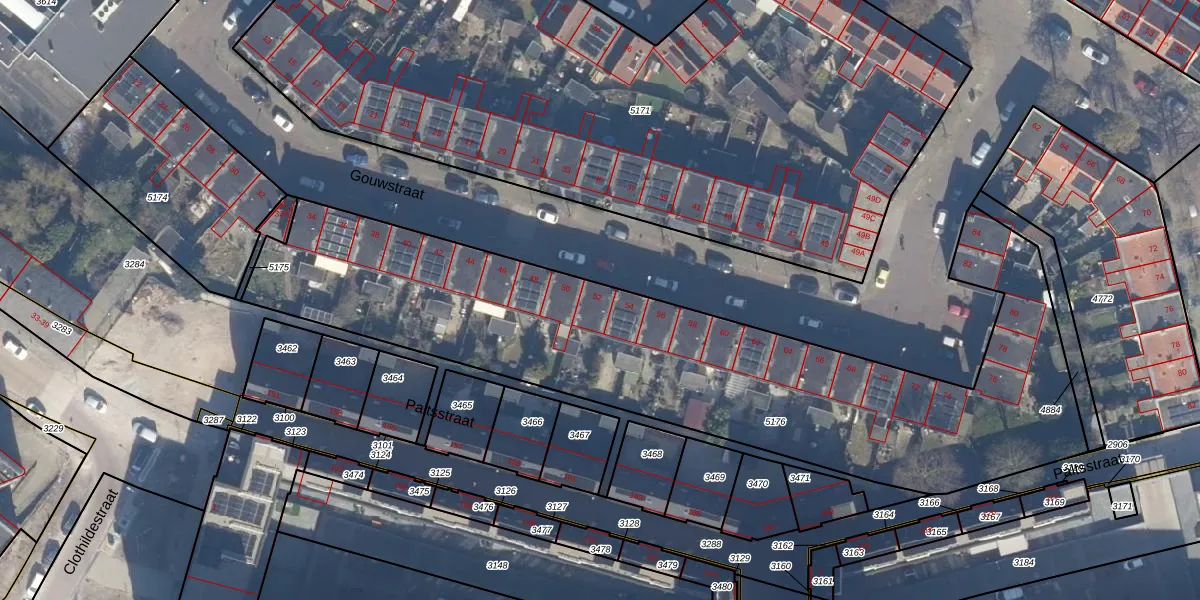Het perceel waarop Gouwstraat 52 staat heeft een oppervlakte van 2915 m². Dit is een zeer groot perceel. De perceeloppervlakte wordt geregistreerd door het Kadaster. Gedetailleerde informatie over de maten van dit perceel kunt u vinden in het rapport Kadastrale kaart met maatvoering van Gouwstraat 52.