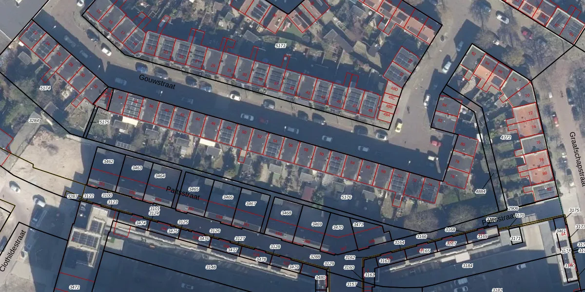 Het perceel waarop Gouwstraat 56 staat heeft een oppervlakte van 2915 m². Dit is een zeer groot perceel. De perceeloppervlakte wordt geregistreerd door het Kadaster. Gedetailleerde informatie over de maten van dit perceel kunt u vinden in het rapport Kadastrale kaart met maatvoering van Gouwstraat 56.