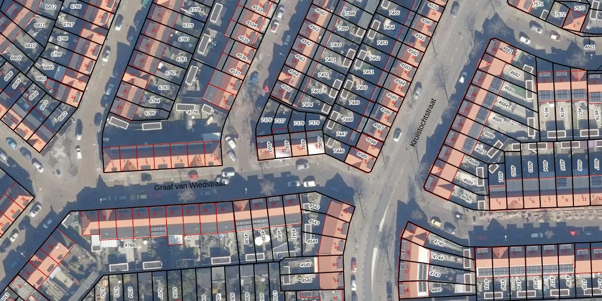 Het perceel waarop Graaf van Wiedstraat 19 staat heeft een oppervlakte van 44 m². Dit is een klein perceel. De perceeloppervlakte wordt geregistreerd door het Kadaster. Gedetailleerde informatie over de maten van dit perceel kunt u vinden in het rapport Kadastrale kaart met maatvoering van Graaf van Wiedstraat 19.