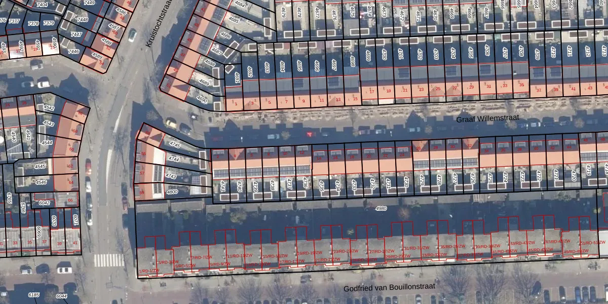 Het perceel waarop Graaf Willemstraat 12 staat heeft een oppervlakte van 94 m². Dit is een klein perceel. De perceeloppervlakte wordt geregistreerd door het Kadaster. Gedetailleerde informatie over de maten van dit perceel kunt u vinden in het rapport Kadastrale kaart met maatvoering van Graaf Willemstraat 12.