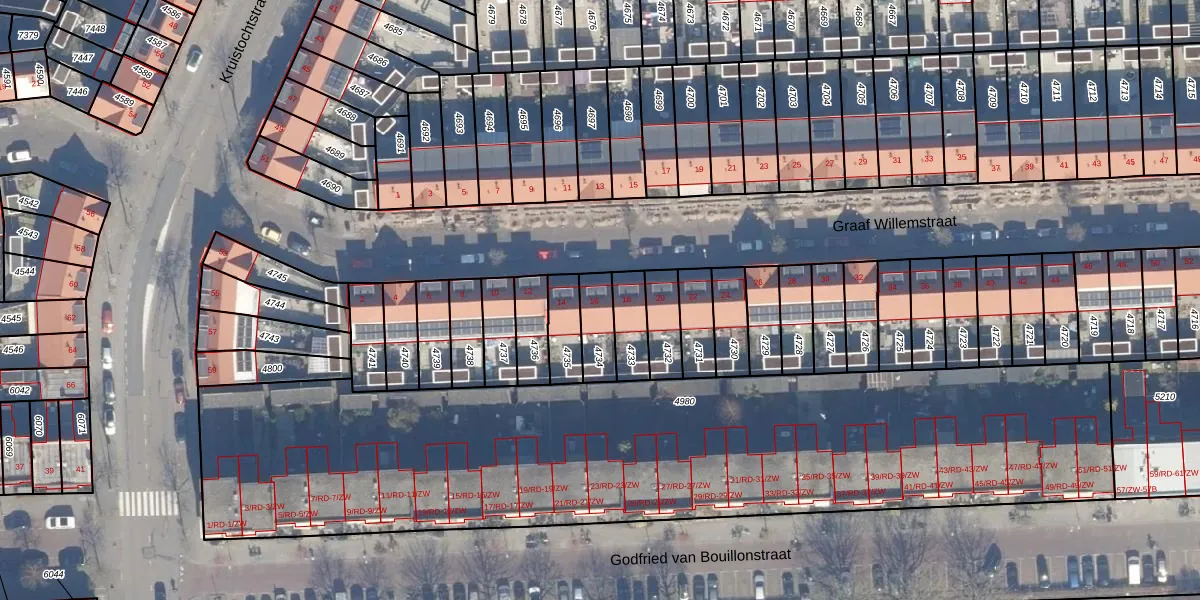 Het perceel waarop Graaf Willemstraat 16 staat heeft een oppervlakte van 98 m². Dit is een klein perceel. De perceeloppervlakte wordt geregistreerd door het Kadaster. Gedetailleerde informatie over de maten van dit perceel kunt u vinden in het rapport Kadastrale kaart met maatvoering van Graaf Willemstraat 16.