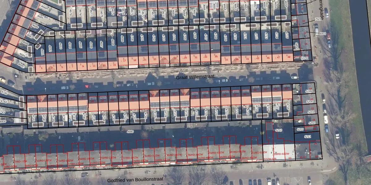Het perceel waarop Graaf Willemstraat 32 staat heeft een oppervlakte van 98 m². Dit is een klein perceel. De perceeloppervlakte wordt geregistreerd door het Kadaster. Gedetailleerde informatie over de maten van dit perceel kunt u vinden in het rapport Kadastrale kaart met maatvoering van Graaf Willemstraat 32.