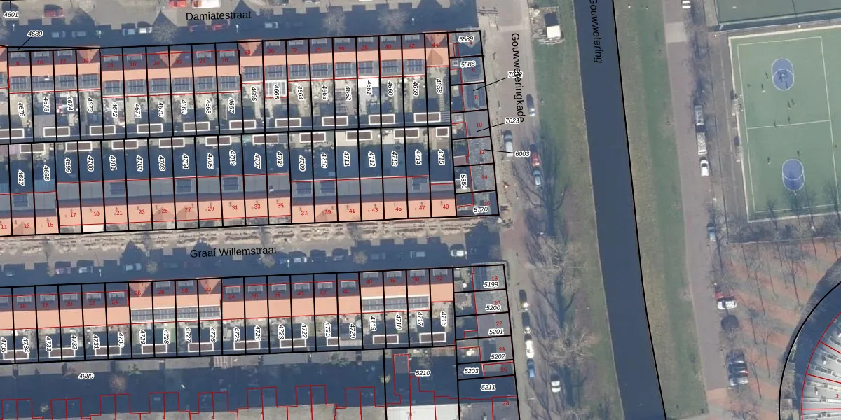 Gebruik de zoekbalk of klik op een perceel voor informatie over de adressen binnen dit perceel.