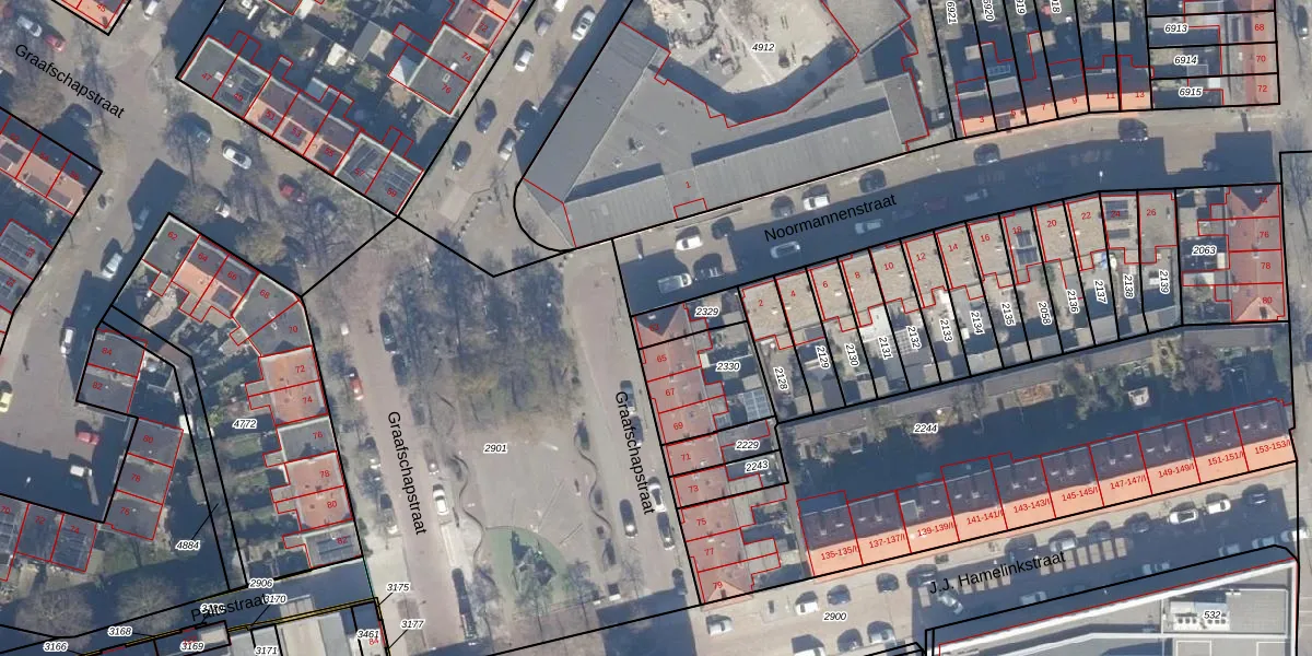 Het perceel waarop Graafschapstraat 63 staat heeft een oppervlakte van 89 m². Dit is een klein perceel. De perceeloppervlakte wordt geregistreerd door het Kadaster. Gedetailleerde informatie over de maten van dit perceel kunt u vinden in het rapport Kadastrale kaart met maatvoering van Graafschapstraat 63.