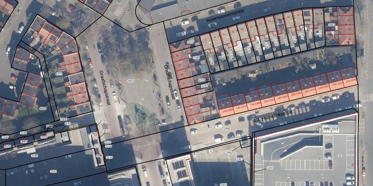 Het perceel waarop Graafschapstraat 73 staat heeft een oppervlakte van 90 m². Dit is een klein perceel. De perceeloppervlakte wordt geregistreerd door het Kadaster. Gedetailleerde informatie over de maten van dit perceel kunt u vinden in het rapport Kadastrale kaart met maatvoering van Graafschapstraat 73.