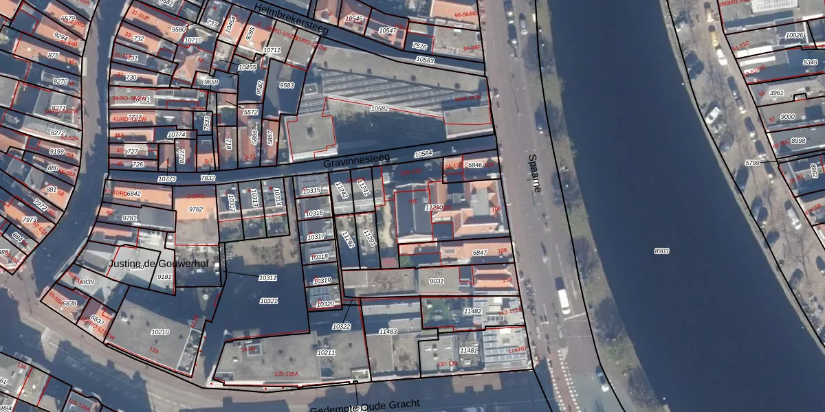 Het perceel waarop Gravinnesteeg 10-E staat heeft een oppervlakte van 564 m². Dit is een groot perceel. De perceeloppervlakte wordt geregistreerd door het Kadaster. Gedetailleerde informatie over de maten van dit perceel kunt u vinden in het rapport Kadastrale kaart met maatvoering van Gravinnesteeg 10-E.