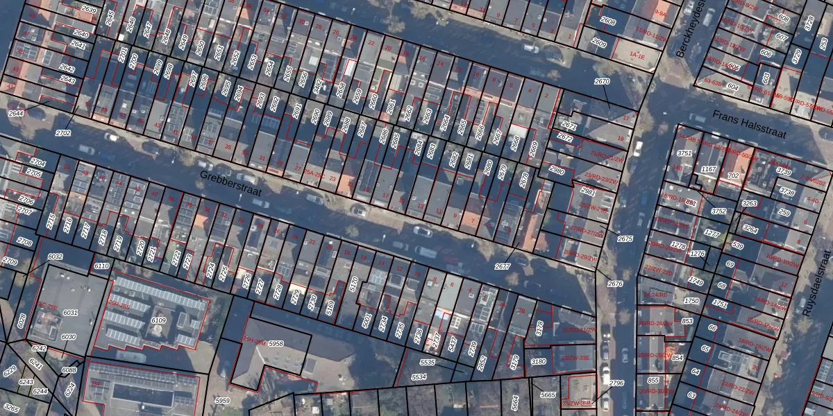 Grebberstraat 13 is gelegen op kadastraal perceel HLM01A2683. Deze kadastrale aanduiding is uniek en wordt gebruikt door het Kadaster om eigendomsrechten en andere zakelijke rechten vast te leggen. Het perceel maakt onderdeel uit van de kadastrale gemeente Haarlem.