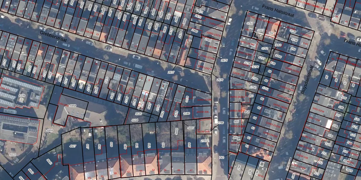 Grebberstraat 2-B is gelegen op kadastraal perceel HLM01A3179. Deze kadastrale aanduiding is uniek en wordt gebruikt door het Kadaster om eigendomsrechten en andere zakelijke rechten vast te leggen. Het perceel maakt onderdeel uit van de kadastrale gemeente Haarlem.