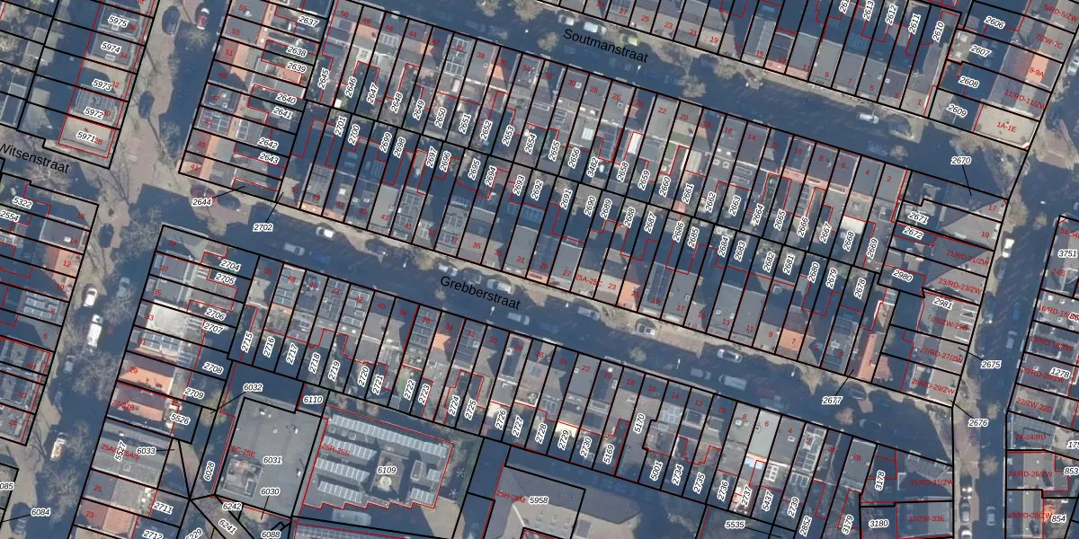 Het perceel waarop Grebberstraat 29 staat heeft een oppervlakte van 87 m². Dit is een klein perceel. De perceeloppervlakte wordt geregistreerd door het Kadaster. Gedetailleerde informatie over de maten van dit perceel kunt u vinden in het rapport Kadastrale kaart met maatvoering van Grebberstraat 29.
