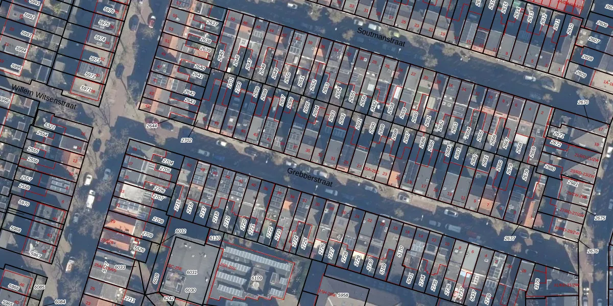Het perceel waarop Grebberstraat 35 staat heeft een oppervlakte van 87 m². Dit is een klein perceel. De perceeloppervlakte wordt geregistreerd door het Kadaster. Gedetailleerde informatie over de maten van dit perceel kunt u vinden in het rapport Kadastrale kaart met maatvoering van Grebberstraat 35.