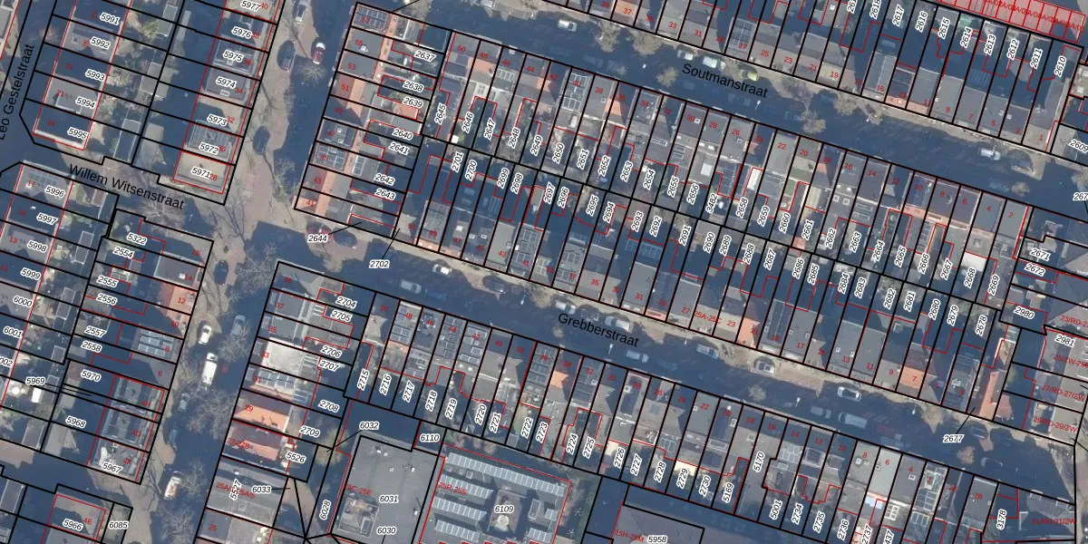 Het perceel waarop Grebberstraat 39 staat heeft een oppervlakte van 87 m². Dit is een klein perceel. De perceeloppervlakte wordt geregistreerd door het Kadaster. Gedetailleerde informatie over de maten van dit perceel kunt u vinden in het rapport Kadastrale kaart met maatvoering van Grebberstraat 39.