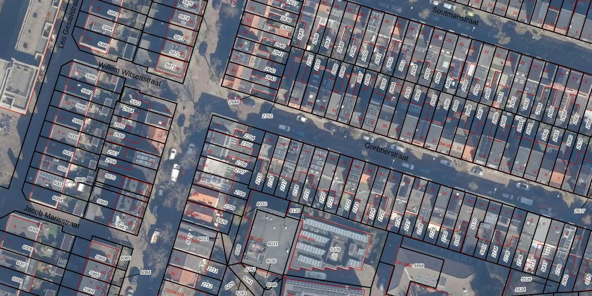 Het perceel waarop Grebberstraat 46 staat heeft een oppervlakte van 87 m². Dit is een klein perceel. De perceeloppervlakte wordt geregistreerd door het Kadaster. Gedetailleerde informatie over de maten van dit perceel kunt u vinden in het rapport Kadastrale kaart met maatvoering van Grebberstraat 46.