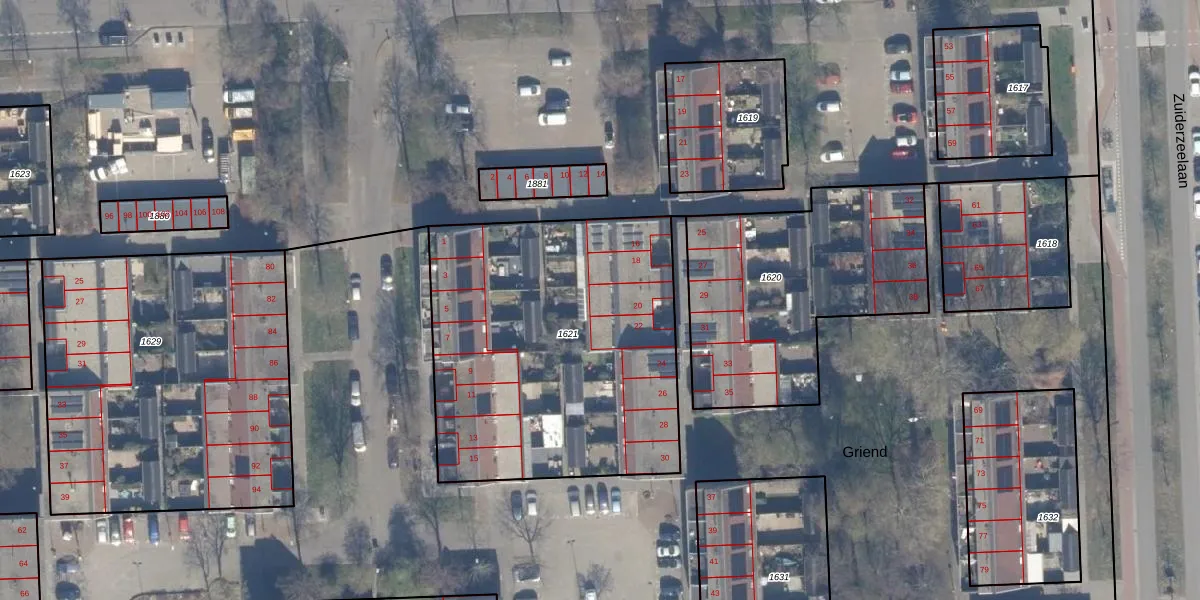 Het perceel waarop Griend 20 staat heeft een oppervlakte van 1727 m². Dit is een zeer groot perceel. De perceeloppervlakte wordt geregistreerd door het Kadaster. Gedetailleerde informatie over de maten van dit perceel kunt u vinden in het rapport Kadastrale kaart met maatvoering van Griend 20.