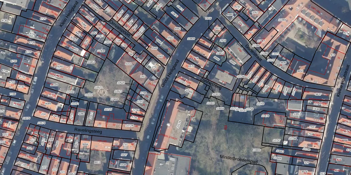 Groot Heiligland 25 is gelegen op kadastraal perceel HLM01D10300. Deze kadastrale aanduiding is uniek en wordt gebruikt door het Kadaster om eigendomsrechten en andere zakelijke rechten vast te leggen. Het perceel maakt onderdeel uit van de kadastrale gemeente Haarlem.