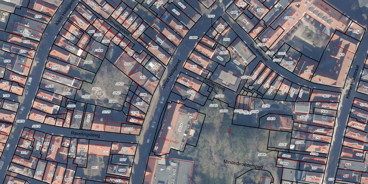 Groot Heiligland 25-A is gelegen op kadastraal perceel HLM01D10300. Deze kadastrale aanduiding is uniek en wordt gebruikt door het Kadaster om eigendomsrechten en andere zakelijke rechten vast te leggen. Het perceel maakt onderdeel uit van de kadastrale gemeente Haarlem.