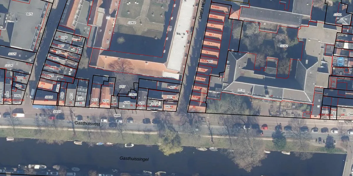 Het adres is gelegen op perceel 4617 in de sectie D en de kadastrale gemeente Haarlem. De kadastrale aanduiding is aldus HLM01-D-4617. Het perceel is kleiner dan gemiddeld in Haarlem. Het perceel is 112 m² groot, terwijl het gemiddelde ligt op 328,37 m². Het grootste perceel in de kadastrale gemeente is 13,9 ha. Het kleinste perceel heeft een oppervlakte van 0 m². Er zijn geen andere adressen aanwezig op het perceel. In de Basisregistratie Kadaster (BRK) werden de grenzen van het perceel geregistreerd op 01-10-2001.