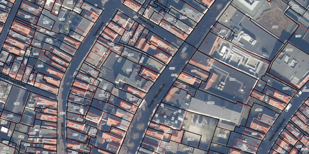 Het perceel waarop Grote Houtstraat 110 staat heeft een oppervlakte van 91 m². Dit is een klein perceel. De perceeloppervlakte wordt geregistreerd door het Kadaster. Gedetailleerde informatie over de maten van dit perceel kunt u vinden in het rapport Kadastrale kaart met maatvoering van Grote Houtstraat 110.