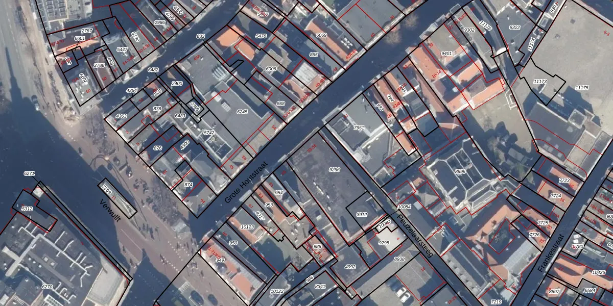 Het perceel waarop Grote Houtstraat 55 staat heeft een oppervlakte van 448 m². Dit is een groot perceel. De perceeloppervlakte wordt geregistreerd door het Kadaster. Gedetailleerde informatie over de maten van dit perceel kunt u vinden in het rapport Kadastrale kaart met maatvoering van Grote Houtstraat 55.