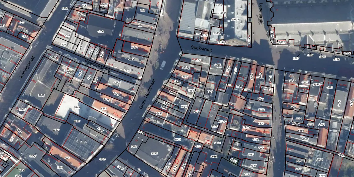 Het perceel waarop Grote Houtstraat 7-D staat heeft een oppervlakte van 89 m². Dit is een klein perceel. De perceeloppervlakte wordt geregistreerd door het Kadaster. Gedetailleerde informatie over de maten van dit perceel kunt u vinden in het rapport Kadastrale kaart met maatvoering van Grote Houtstraat 7-D.