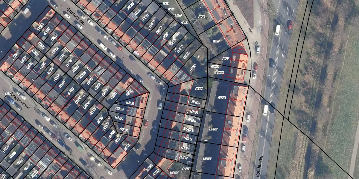 Het perceel waarop Gruttostraat 33 staat heeft een oppervlakte van 173 m². Dit is een middelgroot perceel. De perceeloppervlakte wordt geregistreerd door het Kadaster. Gedetailleerde informatie over de maten van dit perceel kunt u vinden in het rapport Kadastrale kaart met maatvoering van Gruttostraat 33.