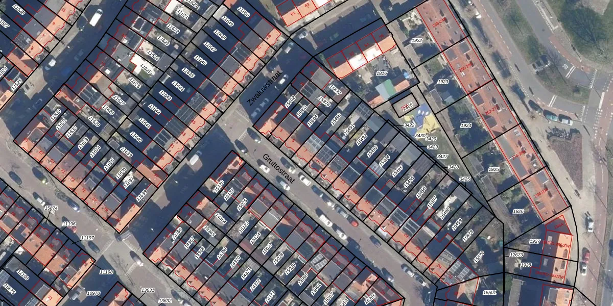 Het perceel waarop Gruttostraat 7 staat heeft een oppervlakte van 155 m². Dit is een middelgroot perceel. De perceeloppervlakte wordt geregistreerd door het Kadaster. Gedetailleerde informatie over de maten van dit perceel kunt u vinden in het rapport Kadastrale kaart met maatvoering van Gruttostraat 7.
