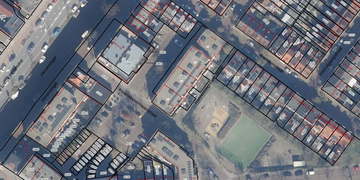 Het adres is gelegen op perceel 5892 in de sectie E en de kadastrale gemeente Haarlem. De kadastrale aanduiding is aldus HLM01-E-5892. De gemiddelde perceeloppervlakte in de kadastrale gemeente Haarlem is 328,33 m². Dit perceel is met zijn 1030 m² dus groter dan gemiddeld. Het kleinste perceel in de kadastrale gemeente is 0 m² groot. De grootste perceeloppervlakte is 13,9 ha. Er zijn 27 adressen aanwezig op het perceel. De laatste wijziging in het de Basisregistratie Kadaster (BRK) was op 12-01-2005.