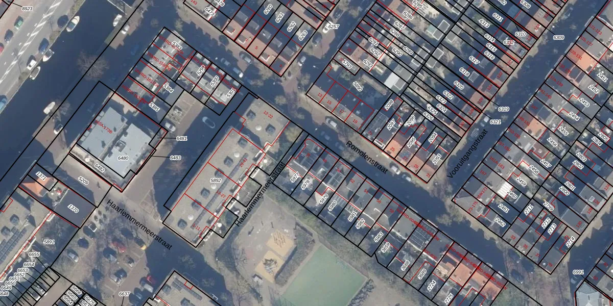 Het adres is gelegen op perceel 5977 in de sectie E en de kadastrale gemeente Haarlem. De kadastrale aanduiding is aldus HLM01-E-5977. Het perceel is kleiner dan gemiddeld in Haarlem. Het perceel is 143 m² groot, terwijl het gemiddelde ligt op 328,37 m². Het kleinste perceel in de kadastrale gemeente is 0 m² groot. De grootste perceeloppervlakte is 13,9 ha. Op het perceel bevinden zich geen andere adressen. De laatste wijziging in het de Basisregistratie Kadaster (BRK) was op 12-01-2005.