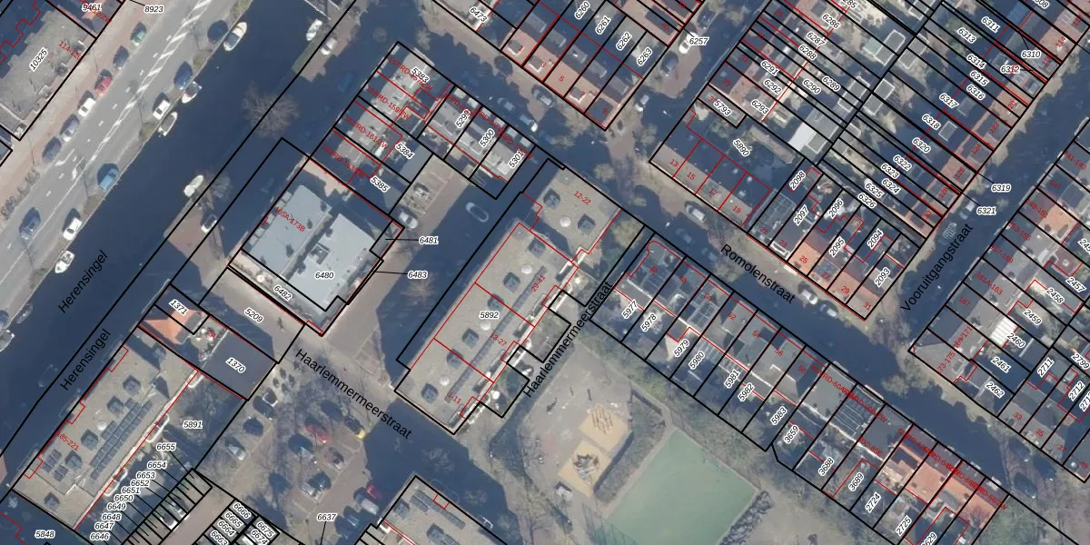 Het adres is gelegen op perceel 5892 in de sectie E en de kadastrale gemeente Haarlem. De kadastrale aanduiding is aldus HLM01-E-5892. De gemiddelde perceeloppervlakte in de kadastrale gemeente Haarlem is 328,37 m². Dit perceel is met zijn 1030 m² dus groter dan gemiddeld. Het kleinste perceel in de kadastrale gemeente is 0 m² groot. De grootste perceeloppervlakte is 13,9 ha. Op het perceel liggen in totaal 27 adressen. De huidige grenzen van het perceel zijn digitaal in de Basisregistratie Kadaster (BRK) geregistreerd op 12-01-2005.