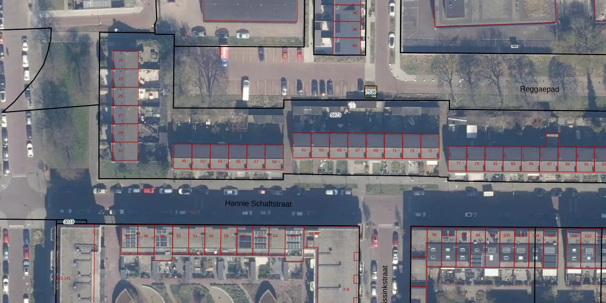 Hannie Schaftstraat 61 is gelegen op kadastraal perceel HLM01E5973. Deze kadastrale aanduiding is uniek en wordt gebruikt door het Kadaster om eigendomsrechten en andere zakelijke rechten vast te leggen. Het perceel maakt onderdeel uit van de kadastrale gemeente Haarlem.