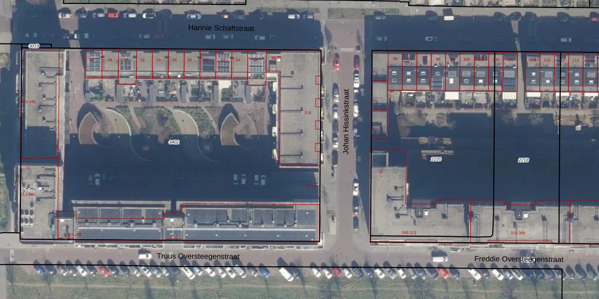 Het perceel waarop Hannie Schaftstraat 86 staat heeft een oppervlakte van 6399 m². Dit is een zeer groot perceel. De perceeloppervlakte wordt geregistreerd door het Kadaster. Gedetailleerde informatie over de maten van dit perceel kunt u vinden in het rapport Kadastrale kaart met maatvoering van Hannie Schaftstraat 86.