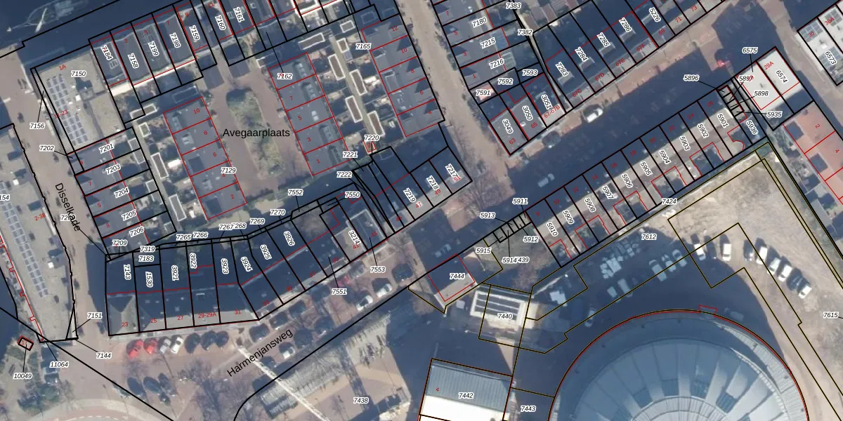 Gebruik de zoekbalk of klik op een perceel voor informatie over de adressen binnen dit perceel.