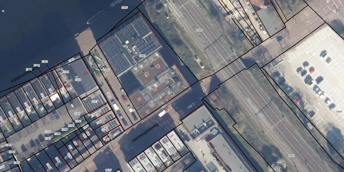 Het perceel waarop het adres ligt is HLM01-E-7496. De afkorting 'HLM01' staat voor kadastrale gemeente Haarlem. De oppervlakte van het perceel is 1843 m². Dat is groter dan gemiddeld in Haarlem, waar de gemiddelde perceeloppervlakte op 328,17 m² ligt. De grootste perceeloppervlakte in de kadastrale gemeente is 13,9 ha. De kleinste oppervlakte bedraagt 0 m². Er zijn 56 adressen aanwezig op het perceel. De huidige grenzen van het perceel zijn digitaal in de Basisregistratie Kadaster (BRK) geregistreerd op 23-11-2020.