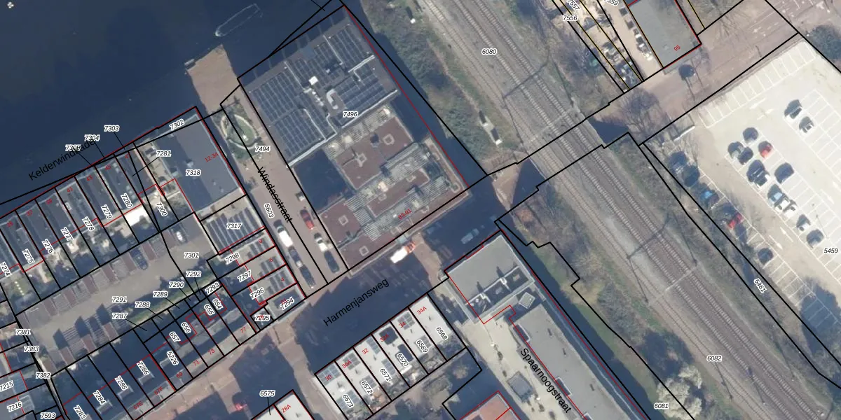 Het perceel waarop het adres ligt is HLM01-E-7496. De afkorting 'HLM01' staat voor kadastrale gemeente Haarlem. De oppervlakte van het perceel is 1843 m². Dat is groter dan gemiddeld in Haarlem, waar de gemiddelde perceeloppervlakte op 328,17 m² ligt. De grootste perceeloppervlakte in de kadastrale gemeente is 13,9 ha. De kleinste oppervlakte bedraagt 0 m². Op het perceel zijn 56 adressen aanwezig. De laatste wijziging in het de Basisregistratie Kadaster (BRK) was op 23-11-2020.