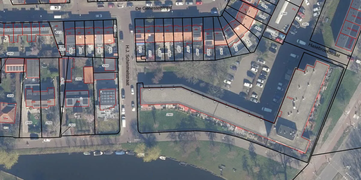 Het perceel waarop Hasebroekstraat 22 staat heeft een oppervlakte van 2780 m². Dit is een zeer groot perceel. De perceeloppervlakte wordt geregistreerd door het Kadaster. Gedetailleerde informatie over de maten van dit perceel kunt u vinden in het rapport Kadastrale kaart met maatvoering van Hasebroekstraat 22.