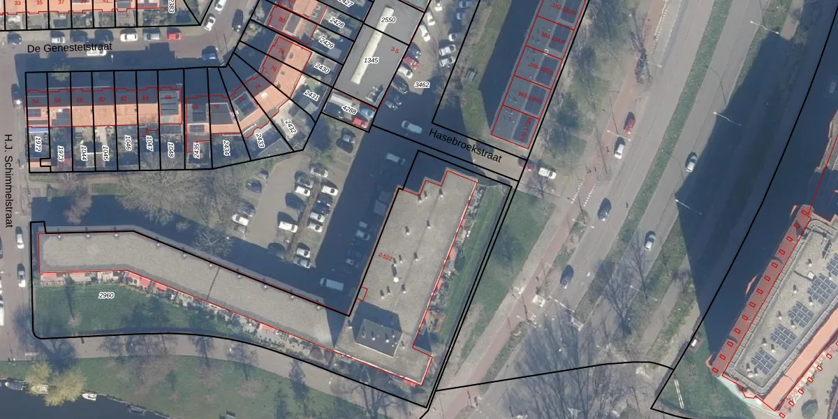 Het perceel waarop Hasebroekstraat 512 staat heeft een oppervlakte van 2780 m². Dit is een zeer groot perceel. De perceeloppervlakte wordt geregistreerd door het Kadaster. Gedetailleerde informatie over de maten van dit perceel kunt u vinden in het rapport Kadastrale kaart met maatvoering van Hasebroekstraat 512.