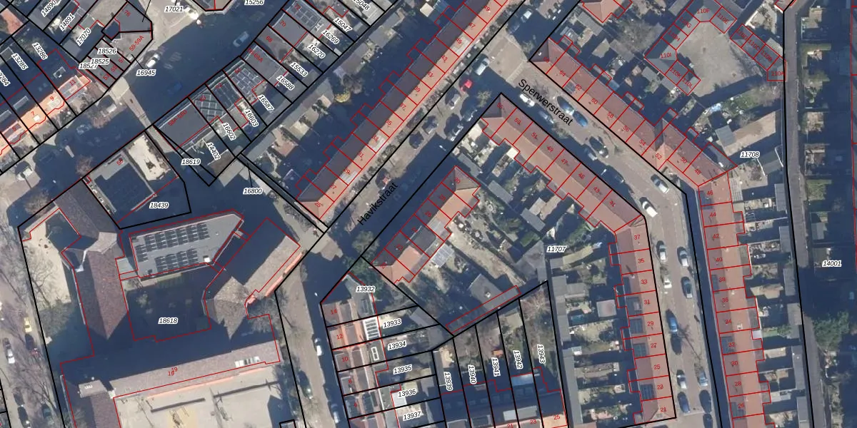 Het perceel waarop Havikstraat 26 staat heeft een oppervlakte van 2900 m². Dit is een zeer groot perceel. De perceeloppervlakte wordt geregistreerd door het Kadaster. Gedetailleerde informatie over de maten van dit perceel kunt u vinden in het rapport Kadastrale kaart met maatvoering van Havikstraat 26.