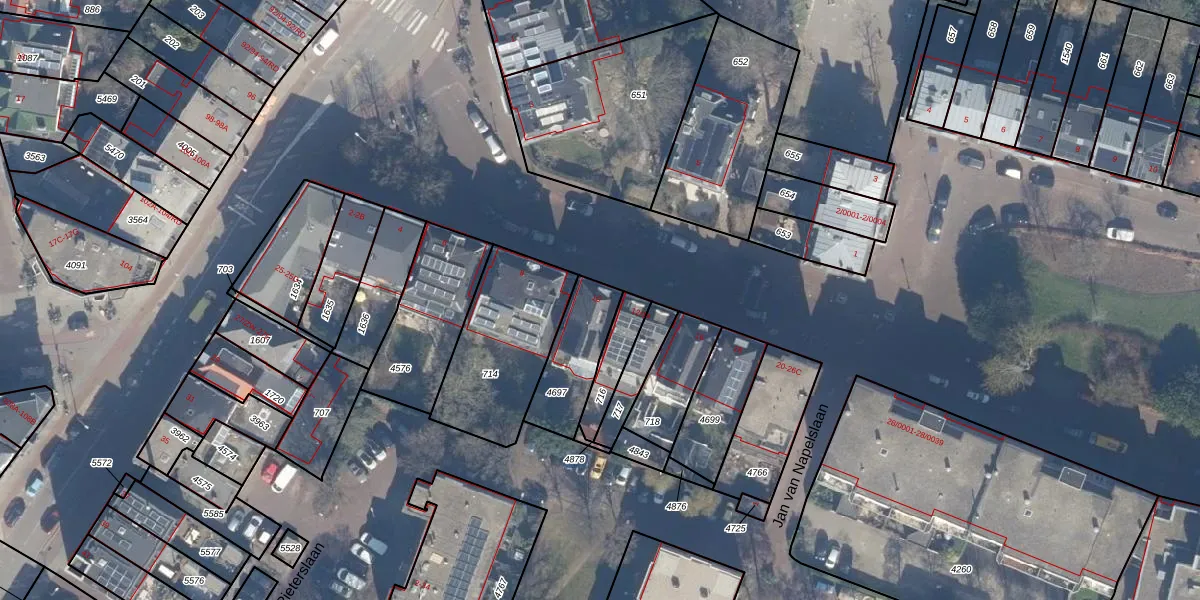 Het adres is gelegen op perceel 4697 in de sectie I en de kadastrale gemeente Haarlem. De kadastrale aanduiding is aldus HLM01-I-4697. De gemiddelde perceelgrootte in Haarlem is 328,37 m². Dit perceel is kleiner: de perceeloppervlakte bedraagt 225 m². De grootste perceeloppervlakte in de kadastrale gemeente is 13,9 ha. De kleinste oppervlakte bedraagt 0 m². Op het perceel bevinden zich geen andere adressen. In de Basisregistratie Kadaster (BRK) werden de grenzen van het perceel geregistreerd op 04-11-2005.