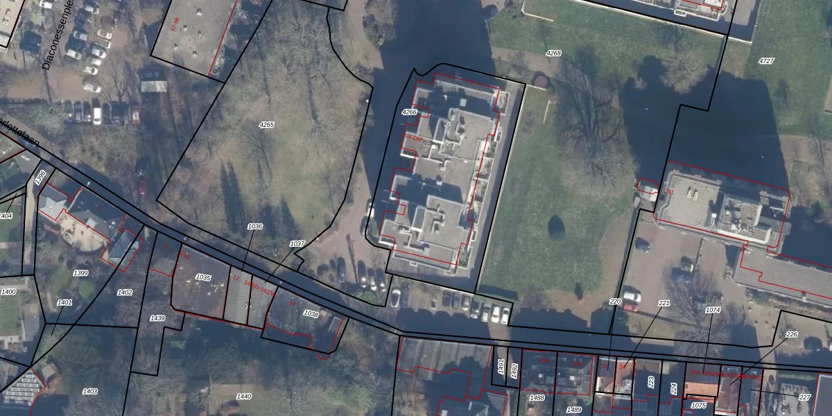 Het adres is gelegen op perceel 4266 in de sectie I en de kadastrale gemeente Haarlem. De kadastrale aanduiding is aldus HLM01-I-4266. Het perceel is met 1440 m² relatief groot. Het gemiddelde ligt in de kadastrale gemeente Haarlem op 328,17 m². Het grootste perceel in de kadastrale gemeente is 13,9 ha. Het kleinste perceel heeft een oppervlakte van 0 m². Er zijn 53 adressen aanwezig op het perceel. In de Basisregistratie Kadaster (BRK) werden de grenzen van het perceel geregistreerd op 27-08-2001.