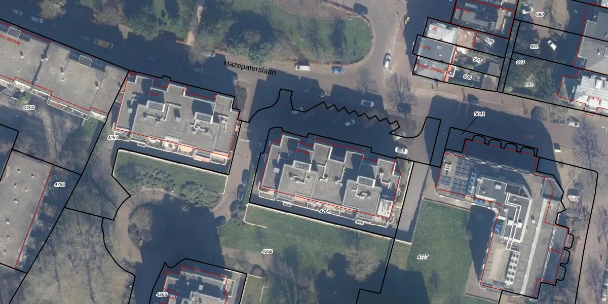 Hazepaterslaan 202 is gelegen op kadastraal perceel HLM01I4264. Deze kadastrale aanduiding is uniek en wordt gebruikt door het Kadaster om eigendomsrechten en andere zakelijke rechten vast te leggen. Het perceel maakt onderdeel uit van de kadastrale gemeente Haarlem.