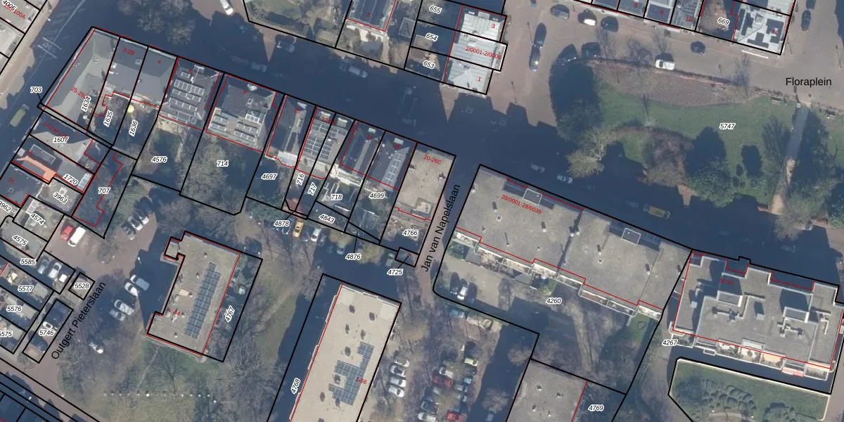 Het adres is gelegen op perceel 4766 in de sectie I en de kadastrale gemeente Haarlem. De kadastrale aanduiding is aldus HLM01-I-4766. De gemiddelde perceelgrootte in Haarlem is 328,37 m². Dit perceel is kleiner: de perceeloppervlakte bedraagt 247 m². De grootste perceeloppervlakte in de kadastrale gemeente is 13,9 ha. De kleinste oppervlakte bedraagt 0 m². Er zijn 9 adressen aanwezig op het perceel. In de Basisregistratie Kadaster (BRK) werden de grenzen van het perceel geregistreerd op 04-11-2005.