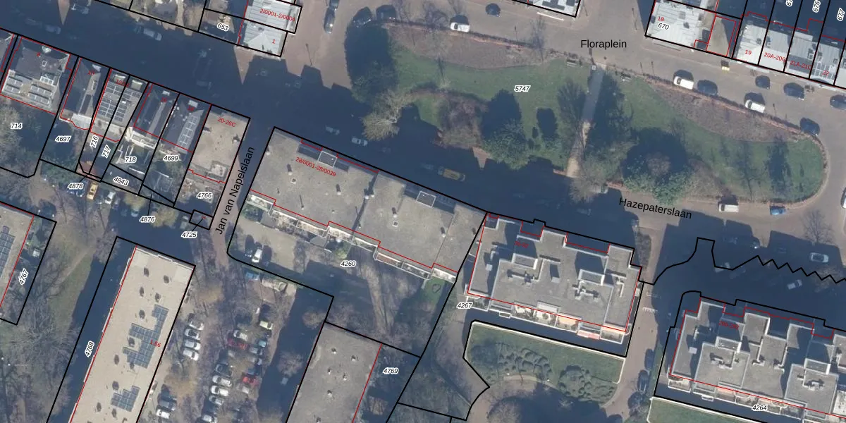Hazepaterslaan 28-0009 is gelegen op kadastraal perceel HLM01I4260. Deze kadastrale aanduiding is uniek en wordt gebruikt door het Kadaster om eigendomsrechten en andere zakelijke rechten vast te leggen. Het perceel maakt onderdeel uit van de kadastrale gemeente Haarlem.