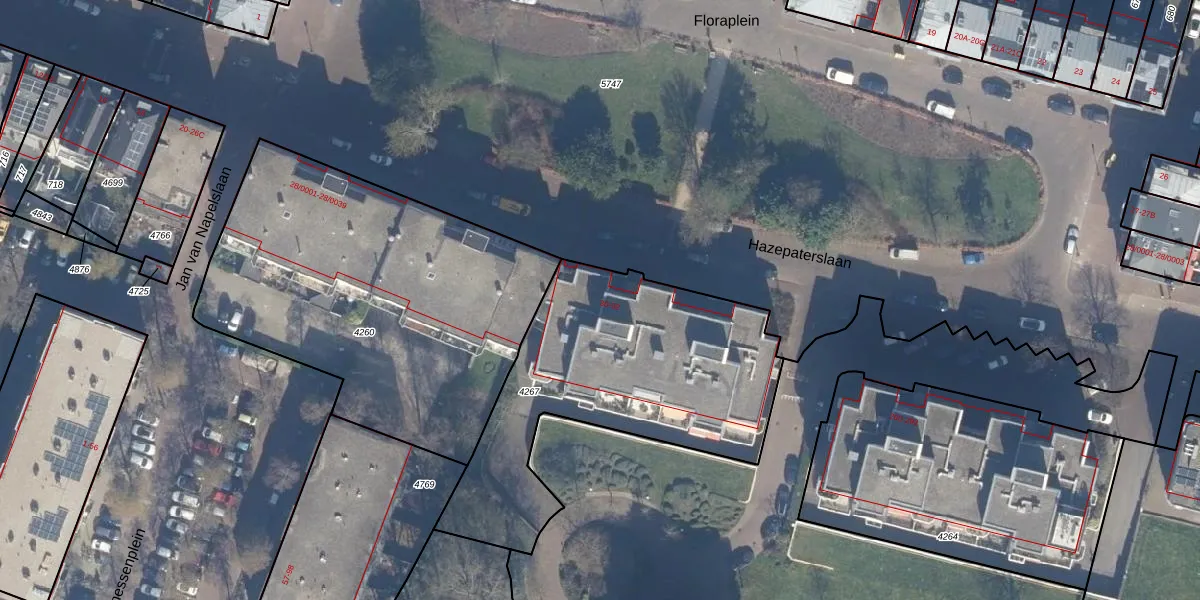 Het perceel waarop Hazepaterslaan 48 staat heeft een oppervlakte van 1405 m². Dit is een zeer groot perceel. De perceeloppervlakte wordt geregistreerd door het Kadaster. Gedetailleerde informatie over de maten van dit perceel kunt u vinden in het rapport Kadastrale kaart met maatvoering van Hazepaterslaan 48.