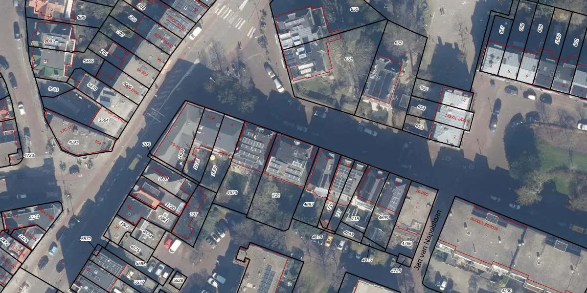 Het adres is gelegen op perceel 714 in de sectie I en de kadastrale gemeente Haarlem. De kadastrale aanduiding is aldus HLM01-I-714. Het perceel is met 455 m² relatief groot. Het gemiddelde ligt in de kadastrale gemeente Haarlem op 328,37 m². De grootste perceeloppervlakte in de kadastrale gemeente is 13,9 ha. De kleinste oppervlakte bedraagt 0 m². Op het perceel bevinden zich geen andere adressen. De laatste wijziging in het de Basisregistratie Kadaster (BRK) was op 04-11-2005.