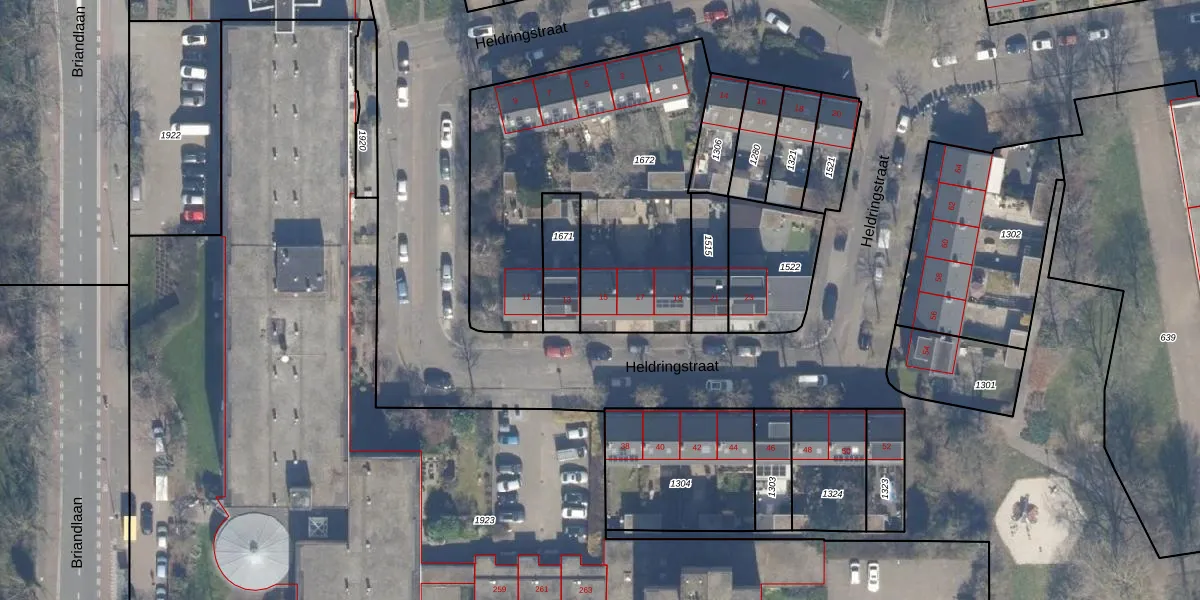 Heldringstraat 15 is gelegen op kadastraal perceel HLM02X1672. Deze kadastrale aanduiding is uniek en wordt gebruikt door het Kadaster om eigendomsrechten en andere zakelijke rechten vast te leggen. Het perceel maakt onderdeel uit van de kadastrale gemeente Haarlem.
