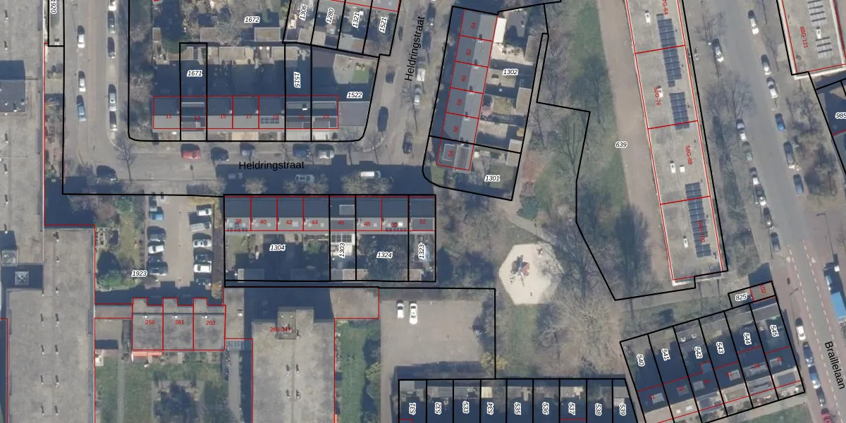 Heldringstraat 52 is gelegen op kadastraal perceel HLM02X1323. Deze kadastrale aanduiding is uniek en wordt gebruikt door het Kadaster om eigendomsrechten en andere zakelijke rechten vast te leggen. Het perceel maakt onderdeel uit van de kadastrale gemeente Haarlem.