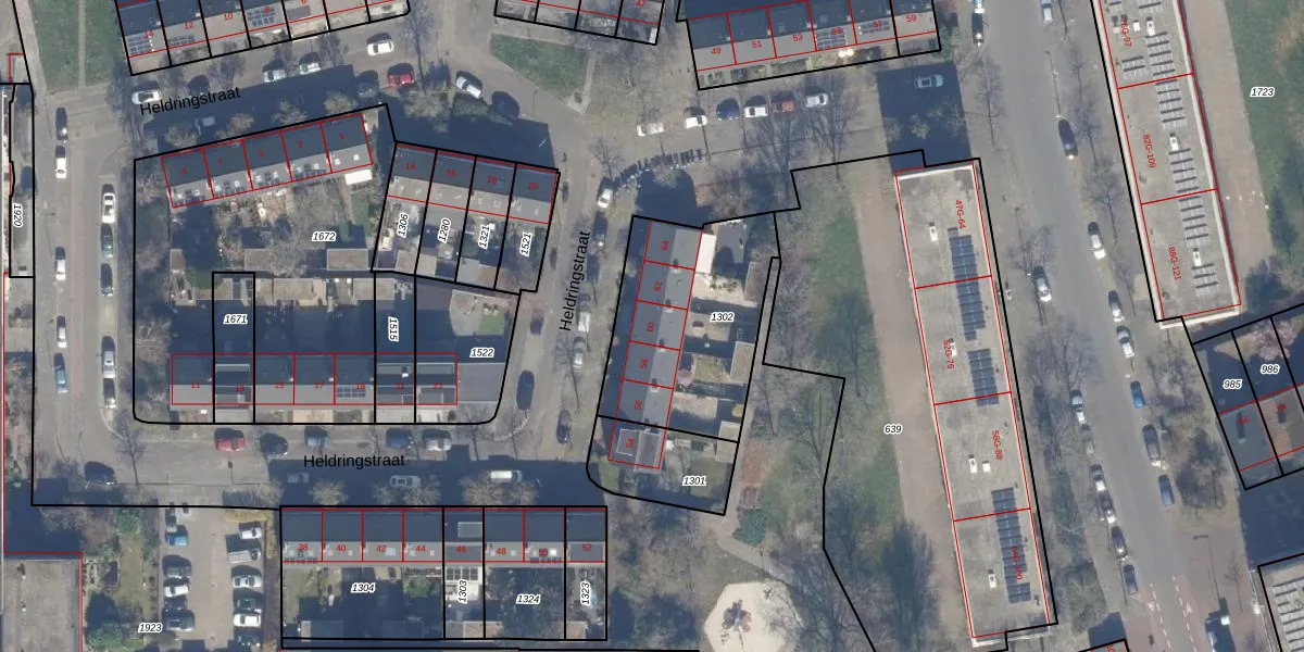Het perceel waarop Heldringstraat 60 staat heeft een oppervlakte van 629 m². Dit is een groot perceel. De perceeloppervlakte wordt geregistreerd door het Kadaster. Gedetailleerde informatie over de maten van dit perceel kunt u vinden in het rapport Kadastrale kaart met maatvoering van Heldringstraat 60.