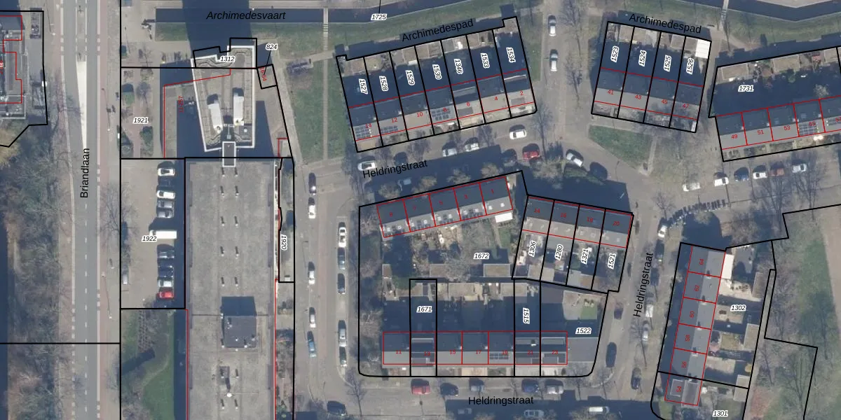 Het perceel waarop Heldringstraat 7 staat heeft een oppervlakte van 1539 m². Dit is een zeer groot perceel. De perceeloppervlakte wordt geregistreerd door het Kadaster. Gedetailleerde informatie over de maten van dit perceel kunt u vinden in het rapport Kadastrale kaart met maatvoering van Heldringstraat 7.