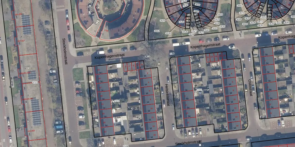 Het perceel waarop Helsinkistraat 2 staat heeft een oppervlakte van 2400 m². Dit is een zeer groot perceel. De perceeloppervlakte wordt geregistreerd door het Kadaster. Gedetailleerde informatie over de maten van dit perceel kunt u vinden in het rapport Kadastrale kaart met maatvoering van Helsinkistraat 2.